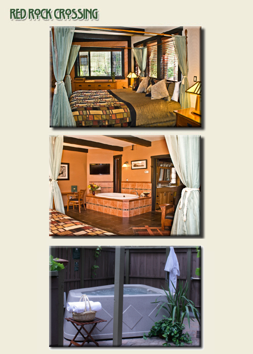 Jetted in-room spa tub for two, mission decor, stained glass accents